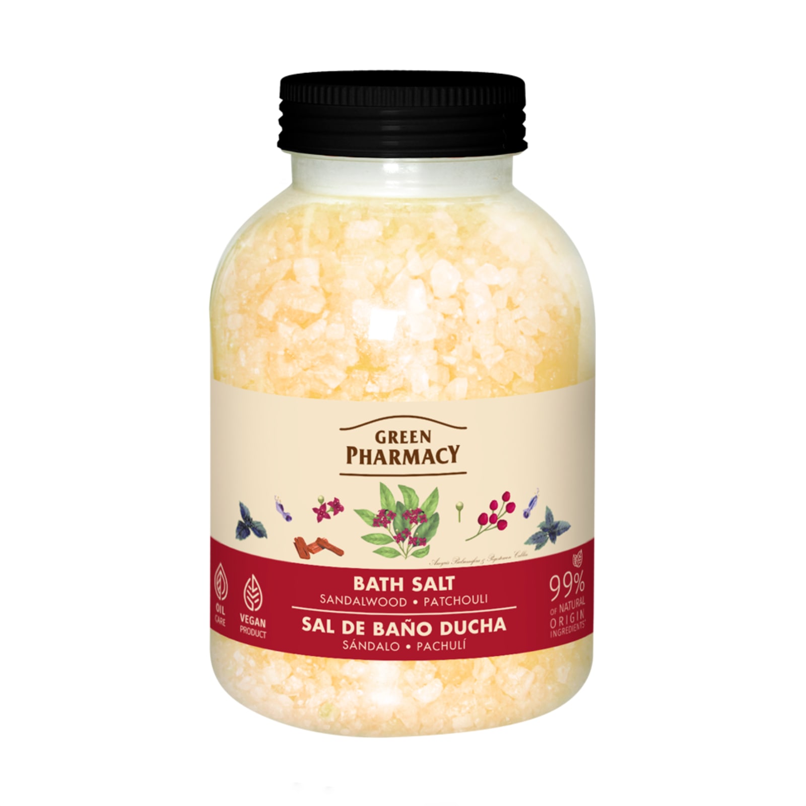 Τα άλατα μπάνιου Green Pharmacy με σανταλόξυλο και πατσουλί αποτελούν μια πολυτελή επιλογή για αναζωογονητικά και θεραπευτικά λουτρά. Περιέχουν φυσικό θαλάσσιο αλάτι πλούσιο σε μεταλλικά στοιχεία, που ενεργοποιεί την κυκλοφορία του αίματος και βοηθά στην απομάκρυνση τοξινών και κατακράτησης υγρών.