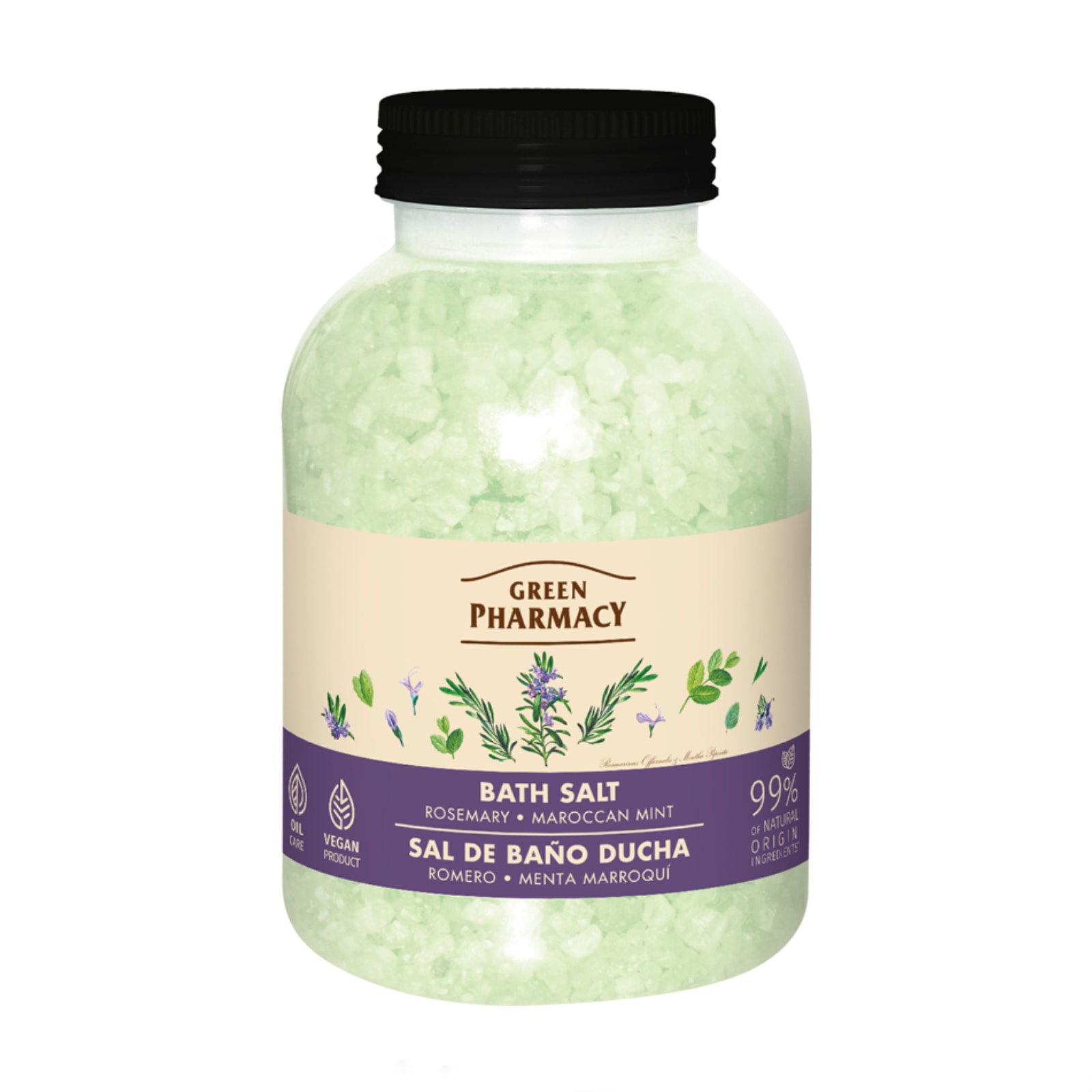 Τα άλατα μπάνιου Green Pharmacy με δενδρολίβανο και μαροκινή μέντα συνδυάζουν φυσική ευεξία με αποτελεσματική τόνωση της επιδερμίδας και του σώματος. Η σύνθεσή τους με μεταλλικά στοιχεία της θάλασσας ενισχύει την ελαστικότητα του δέρματος και βοηθά στην απομάκρυνση των τοξινών, ενώ η αρωματοθεραπευτική τους δράση συμβάλλει στη σωματική και πνευματική αποσυμπίεση.