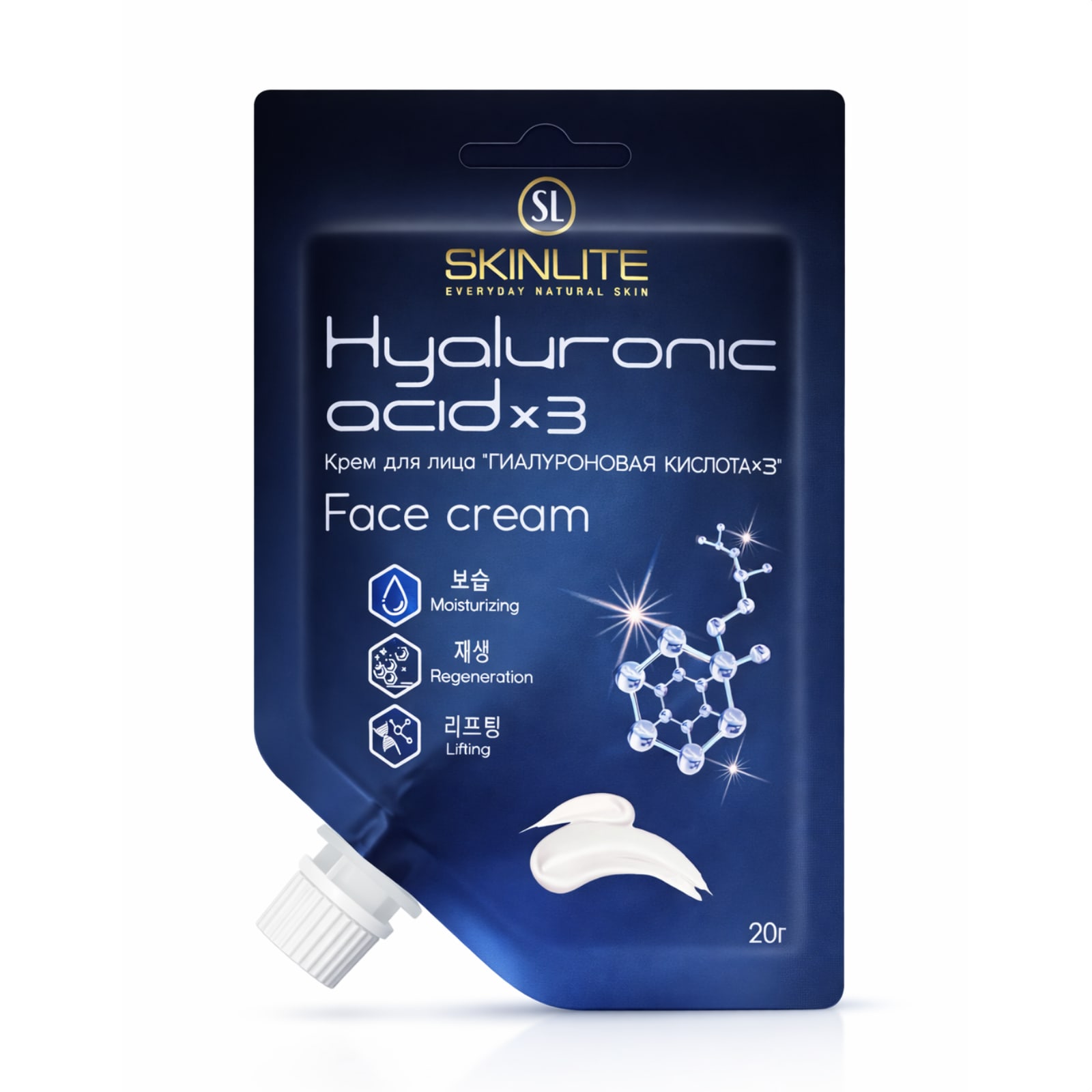 Η χαμηλού μοριακού βάρους υαλουρονικό οξύ διεισδύει στα βαθύτερα στρώματα της επιδερμίδας, ενισχύοντας τη μικροκυκλοφορία και διεγείροντας τη φυσική παραγωγή κολλαγόνου. Η μεσαίου μοριακού βάρους μορφή συγκρατεί την υγρασία και συμβάλλει στην ανανέωση και καταπράυνση του δέρματος. Η υψηλού μοριακού βάρους μορφή δρα στην επιφάνεια, αποτρέποντας την απώλεια νερού και προσφέροντας άμεσο ορατό αποτέλεσμα λείανσης.