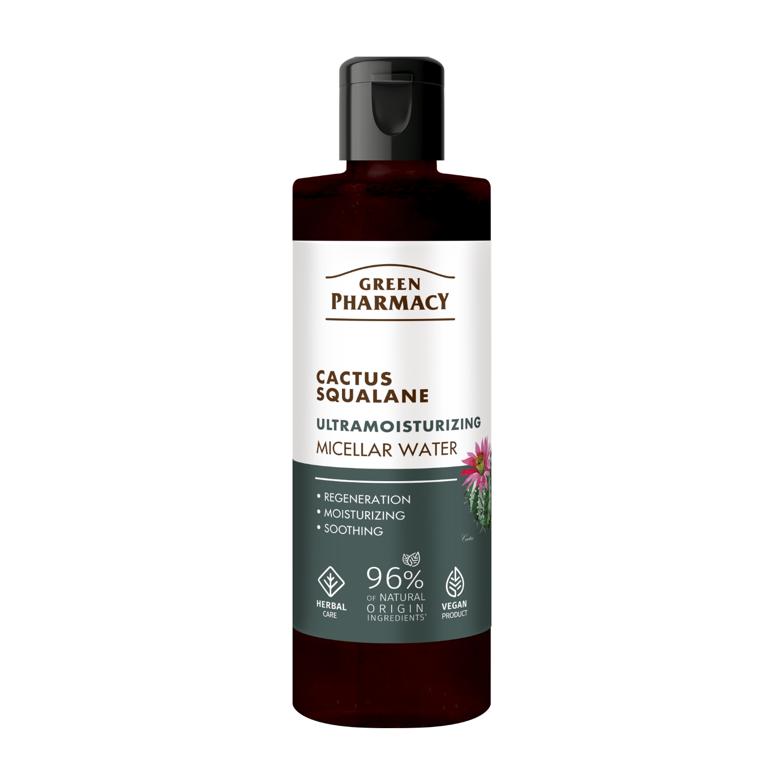 Το μικκυλιακό νερό Green Pharmacy Ultramoisturizing Cactus & Squalane είναι κατάλληλο για κανονική, ξηρή, μικτή, λιπαρή, ευαίσθητη, αφυδατωμένη και προβληματική επιδερμίδα. Η ήπια, χωρίς έλαια σύνθεσή του απομακρύνει αποτελεσματικά μακιγιάζ, ρύπους και περίσσεια σμήγματος, χωρίς να διαταράσσει τον φυσικό προστατευτικό φραγμό του δέρματος.