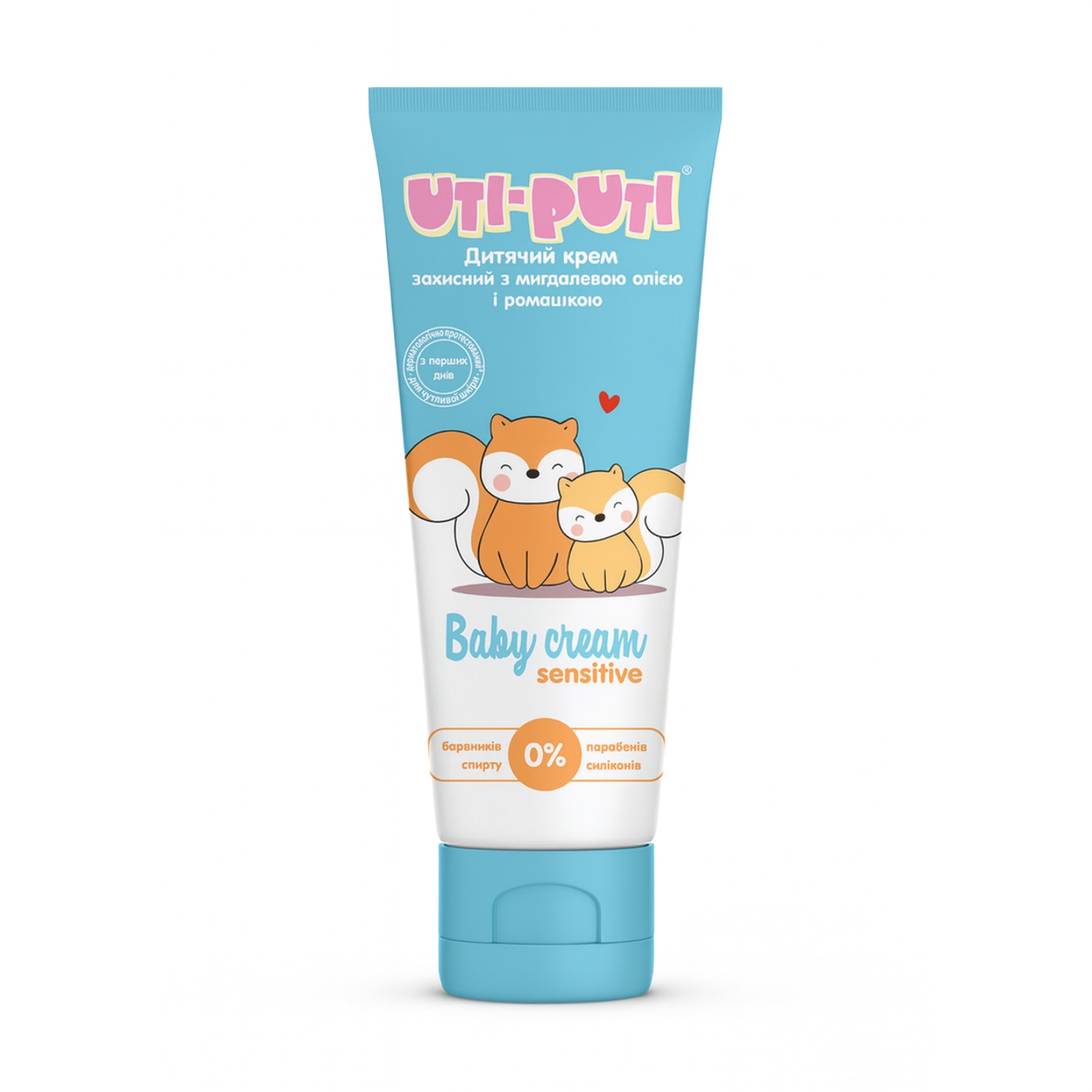 Η προστατευτική παιδική κρέμα Uti-Puti είναι ειδικά σχεδιασμένη για την καθημερινή φροντίδα της ευαίσθητης επιδερμίδας βρεφών και παιδιών. Η σύνθεσή της περιλαμβάνει ενυδατικούς, καταπραϋντικούς και μαλακτικούς παράγοντες, όπως πανθενόλη, αλλαντοΐνη, γλυκερίνη, αμυγδαλέλαιο και εκχύλισμα χαμομηλιού.