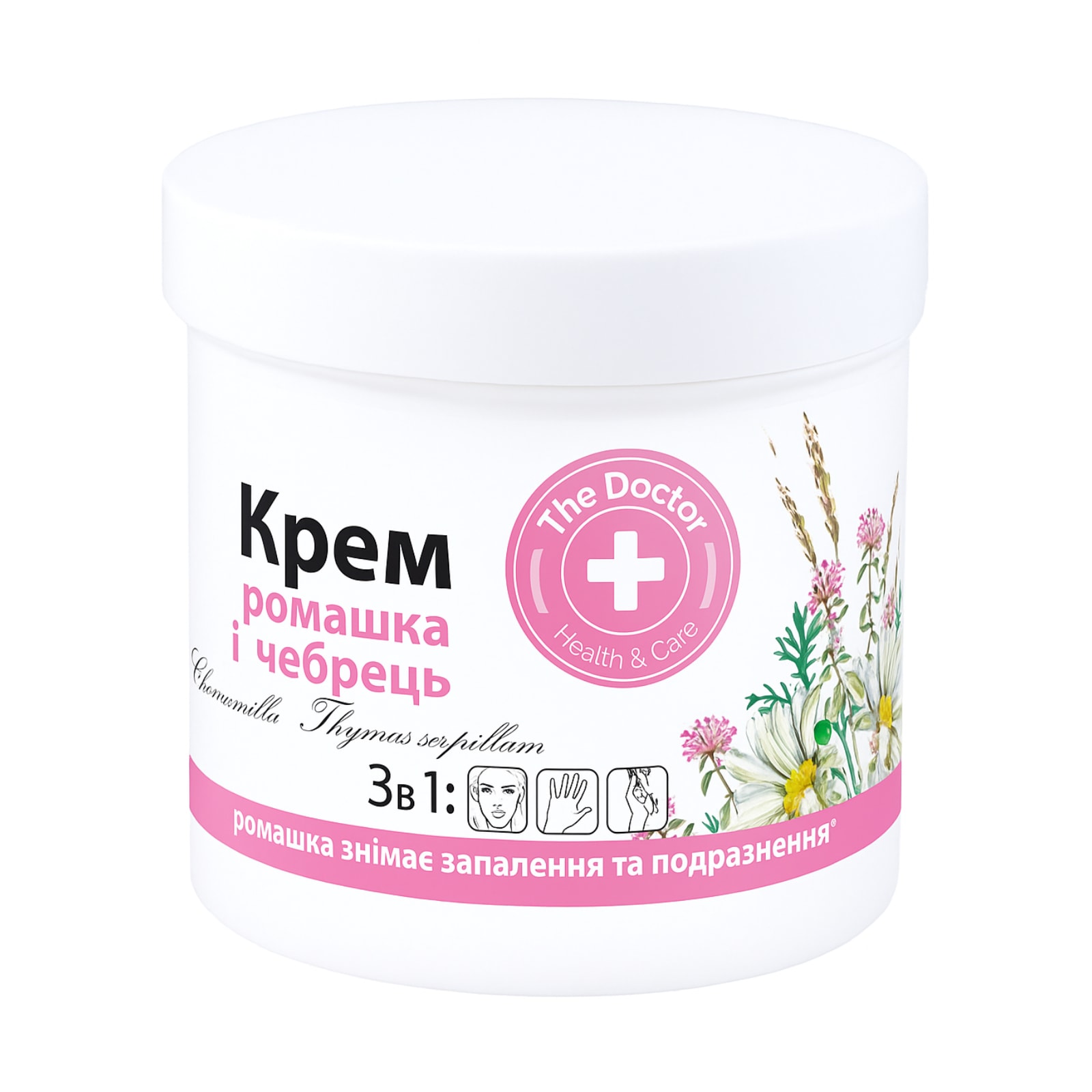 Крем для кожи 3в1 The Doctor Health&Care с ромашкой и чабрецом оказывает деликатное, успокаивающее и питательное действие. Активные компоненты смягчают кожу, устраняют сухость, раздражение, шелушение и покраснение.