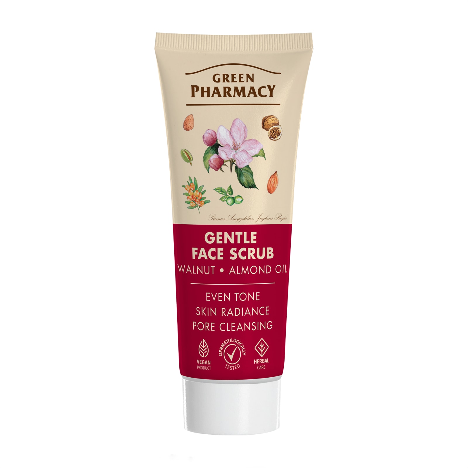 Мягкий ореховый скраб для лица Green Pharmacy создан для бережного очищения и обновления кожи. Натуральная пудра скорлупы грецкого ореха деликатно шлифует поверхность кожи, удаляя ороговевшие клетки и очищая поры.
