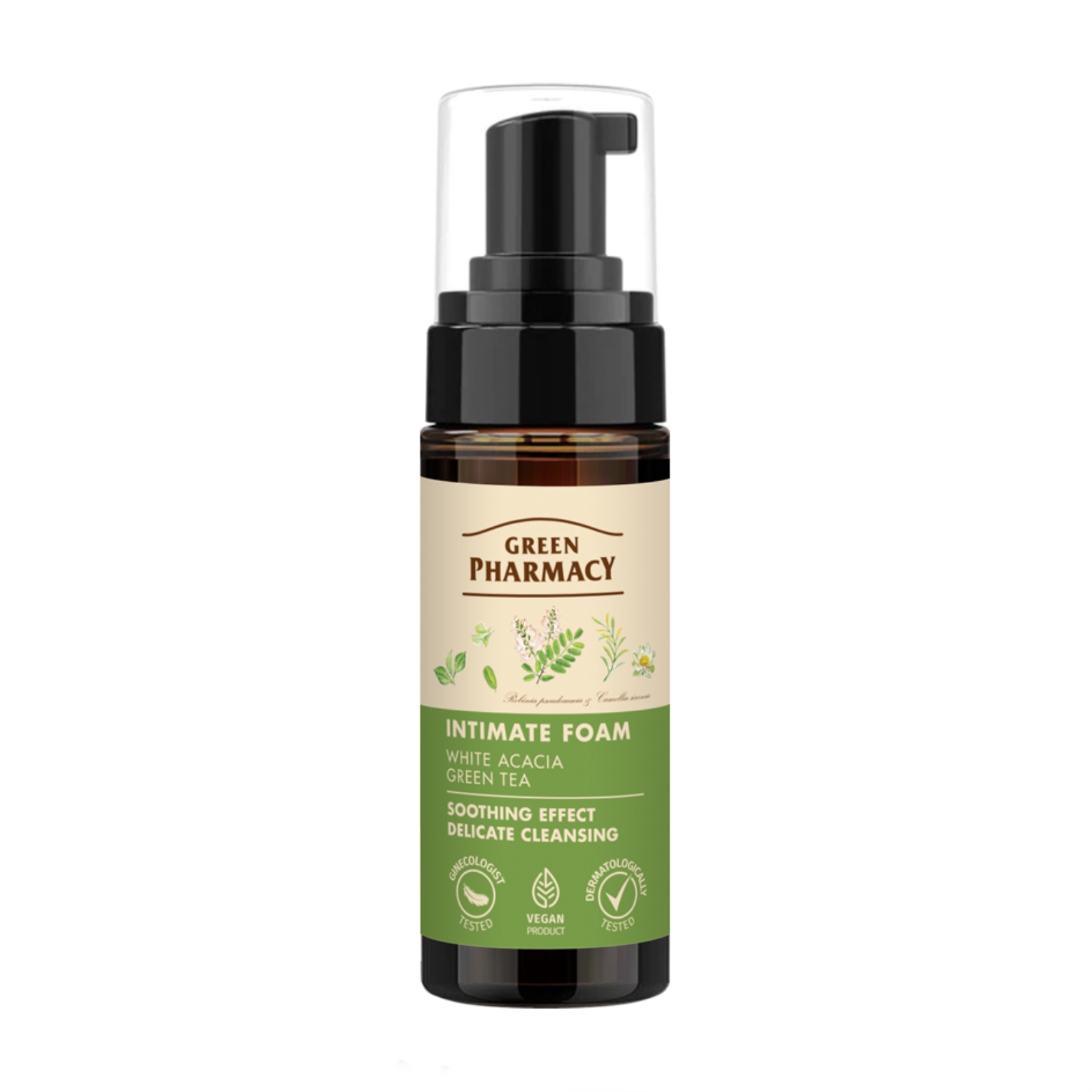 Пенка для интимной гигиены Green Pharmacy «Белая акация и зелёный чай» предназначена для ежедневного ухода за чувствительной зоной.