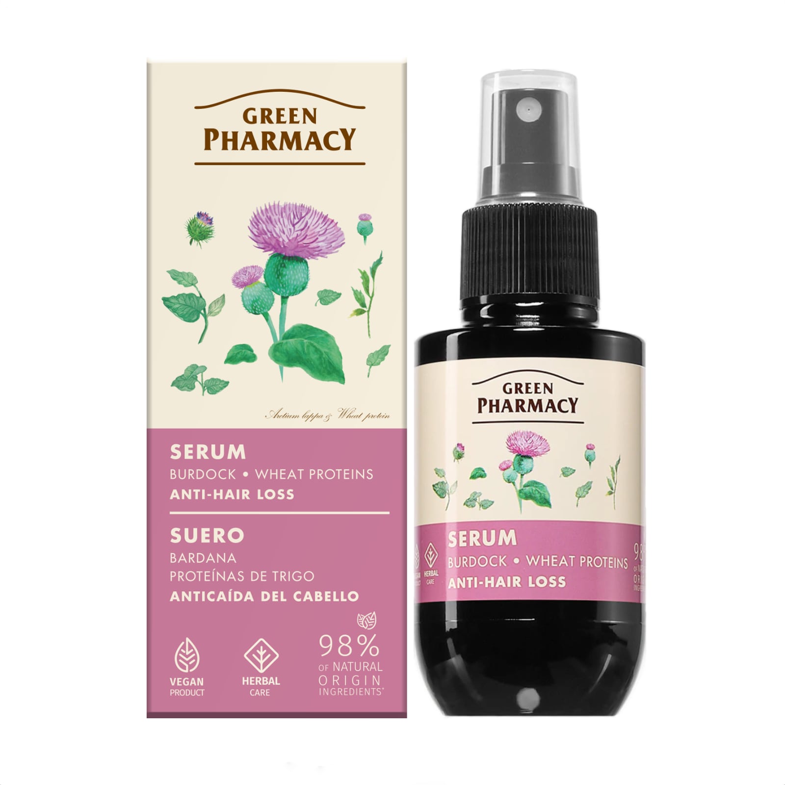 Сыворотка против выпадения волос Green Pharmacy с репейным маслом и протеинами пшеницы разработана для укрепления корней и восстановления ослабленных волос. Активные компоненты воздействуют непосредственно на кожу головы, улучшая микроциркуляцию и питание волосяных фолликулов.
